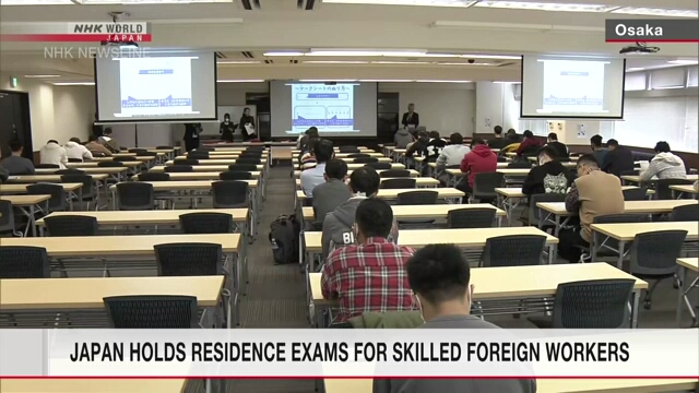 Hôm thứ Hai, 47 người nước ngoài làm việc trong ngành chế tạo các mặt hàng như máy móc công nghiệp và máy móc trong ngành công nghệ thông tin, đã thi viết tại điểm thi Osaka, miền tây Nhật Bản.
