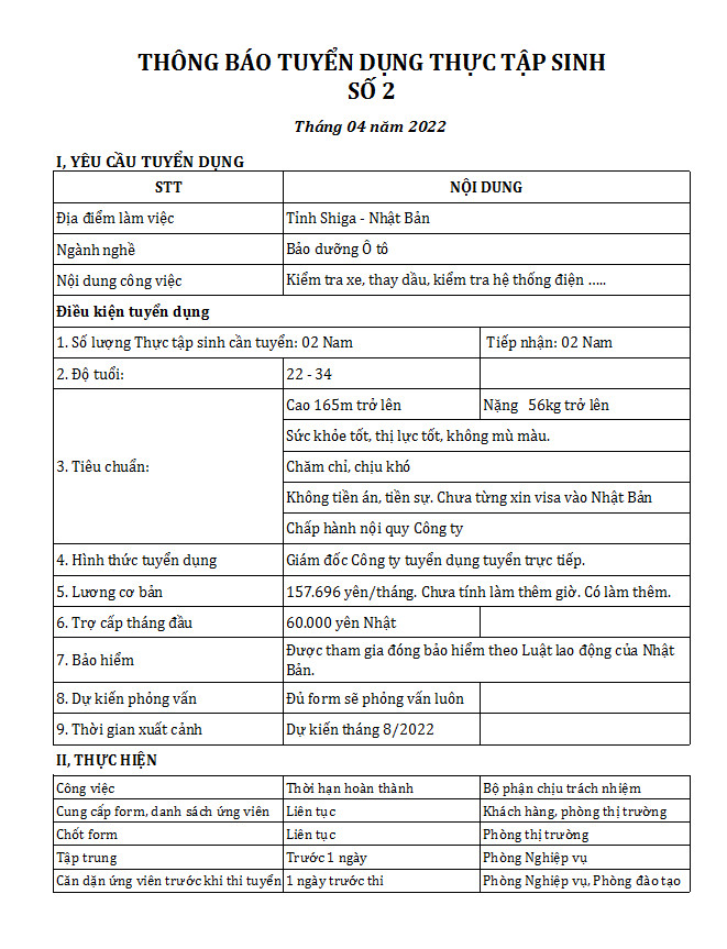 Tuyển TTS BẢO DƯỠNG Ô TÔ đơn hàng số 2