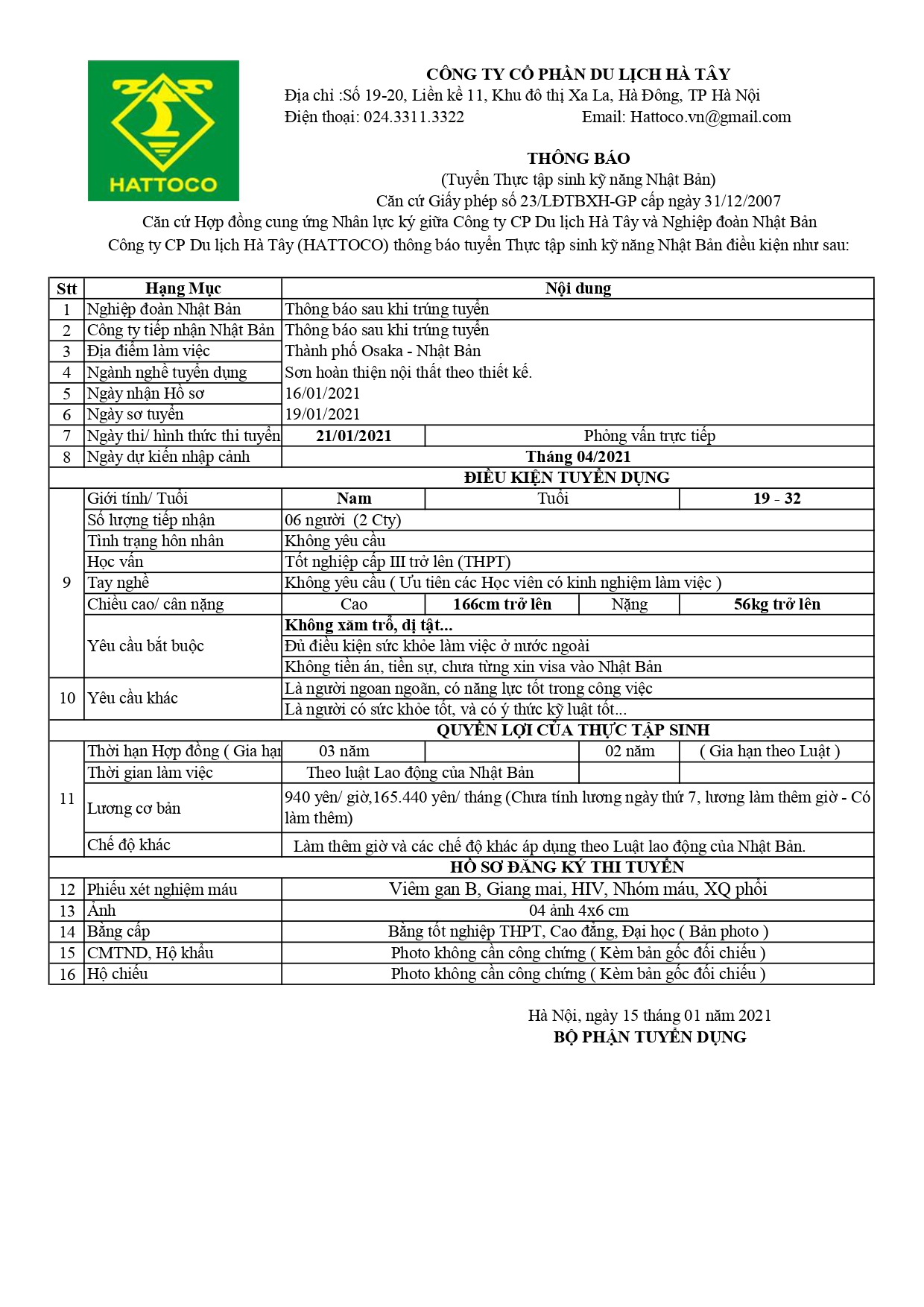 Ngày thi tuyển : 19/01/2021