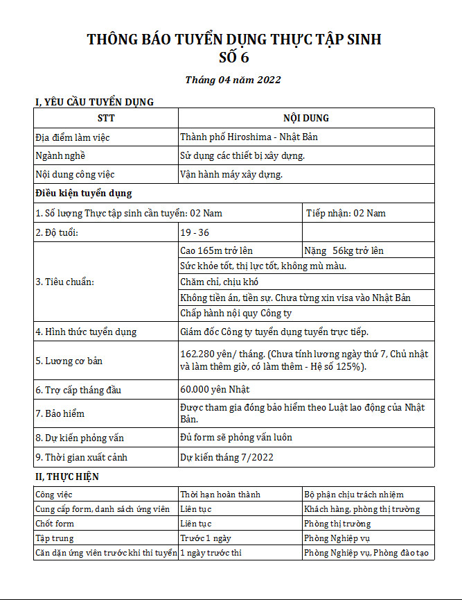 Tuyển TTS VẬN HÀNH MÁY XÂY DỰNG đơn hàng số 6